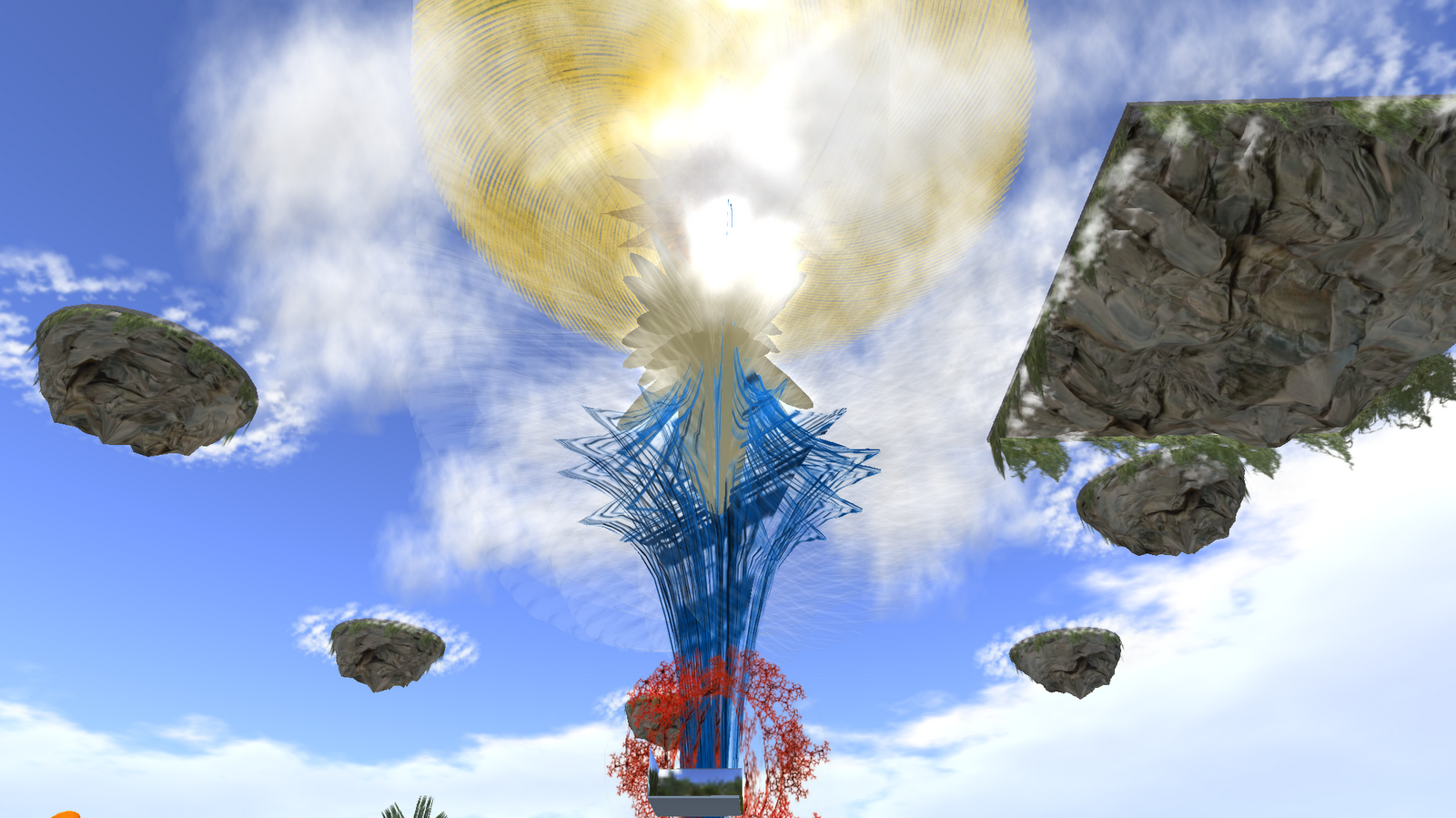 DanCoyote Antonelli's Tower of Light surrounded by the floating islands of SL English on UWA VIRTLANTIS