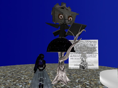 Lil Eizenstein', in a first ever RL/SL collaboration between American and West Australian artists. His RL sculptures stood alongside M Lindens RL works as he officially declared the RL exhibition open!
