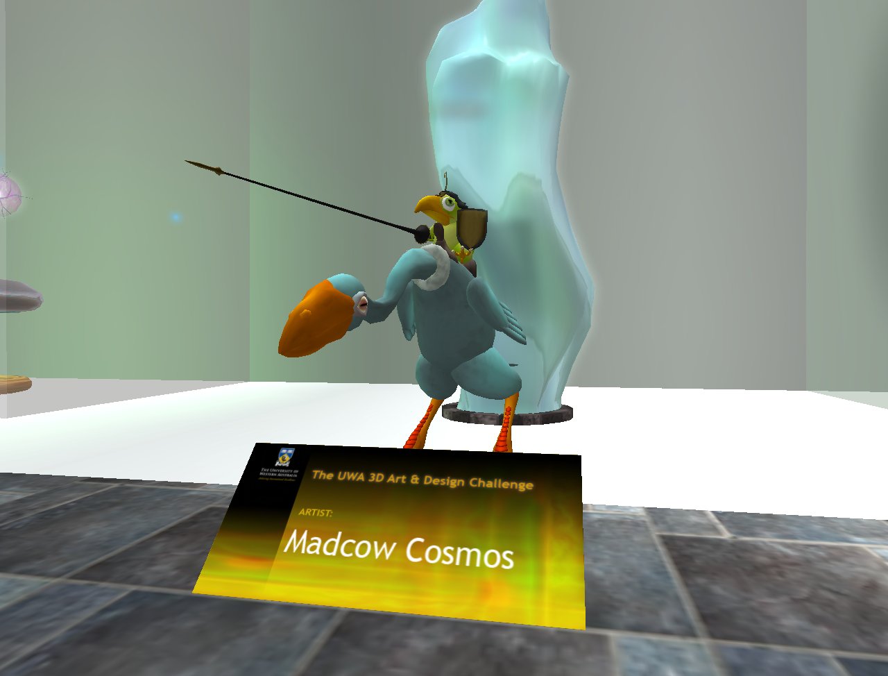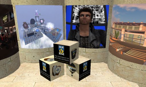 On a plinth at the UWA in Second life display, masterfully created by RL UWA alumni, and SL curator of art at the UWA SIMS, quadrapop Lane are the following words: