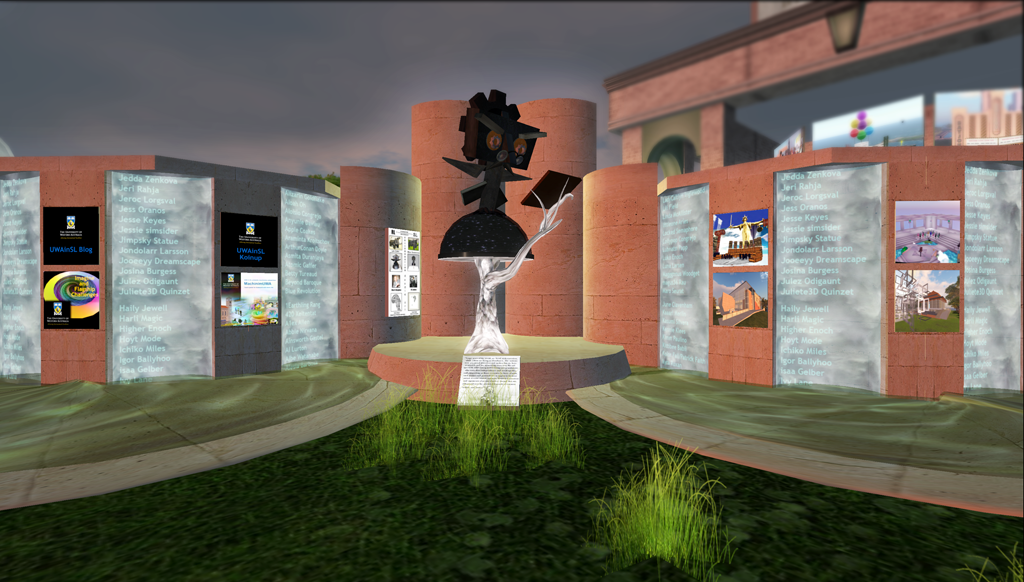 "The judges felt that UWA is one of the prolific and active educational facilities incorporating all of Second Life residents into it's agenda, not just their own, private student body. You have already created platforms and creative competitions for Machinimists and under one roof have included many independent Artists In Residence - which is something very few other facilities of this type have considered doing. Other higher educational facilities have planted themselves on an island and build walls to keep the rest of the virtual world out as where UWA has consistently invited them in"